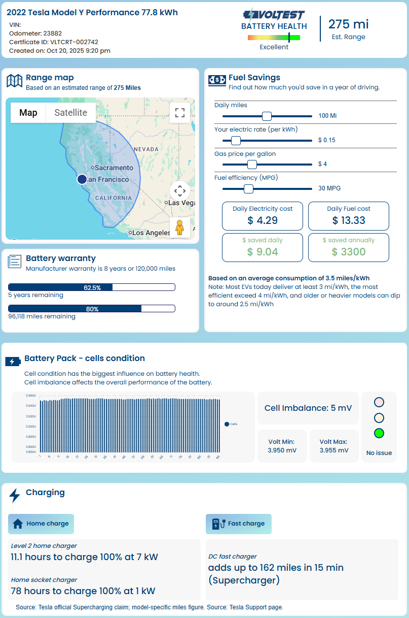Add these custom, interactive widgets to your listings, directly powered by Voltest reports!